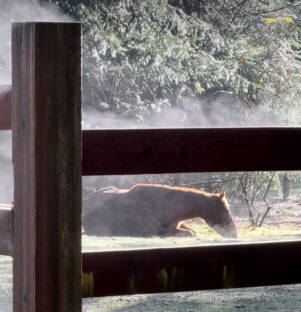 Horses achieve REM (rapid eye movement) sleep when they are lying down. When they standing and resting they can’t enter REM sleep due to their muscles needing to relax completely. In order for a horse to lie down and get REM sleep, they must feel safe and comfortable enough to lie down. This happens when they’re in a secure environment or surrounded by a trusted herd.